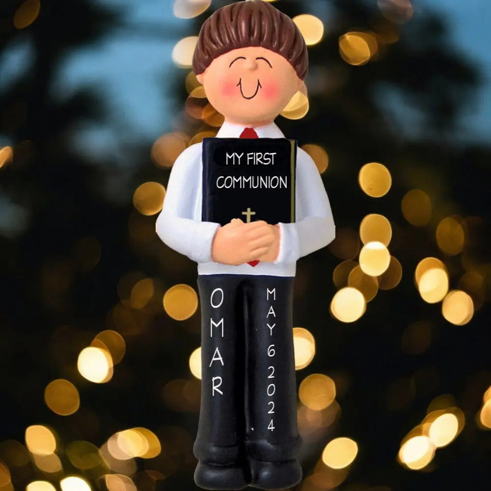 Introducing our delightful First Communion Bible: Male, Brown, a perfect addition to your holiday decor. Made from durable poly-resin, this ornament is designed to last for years to come. Celebrate...